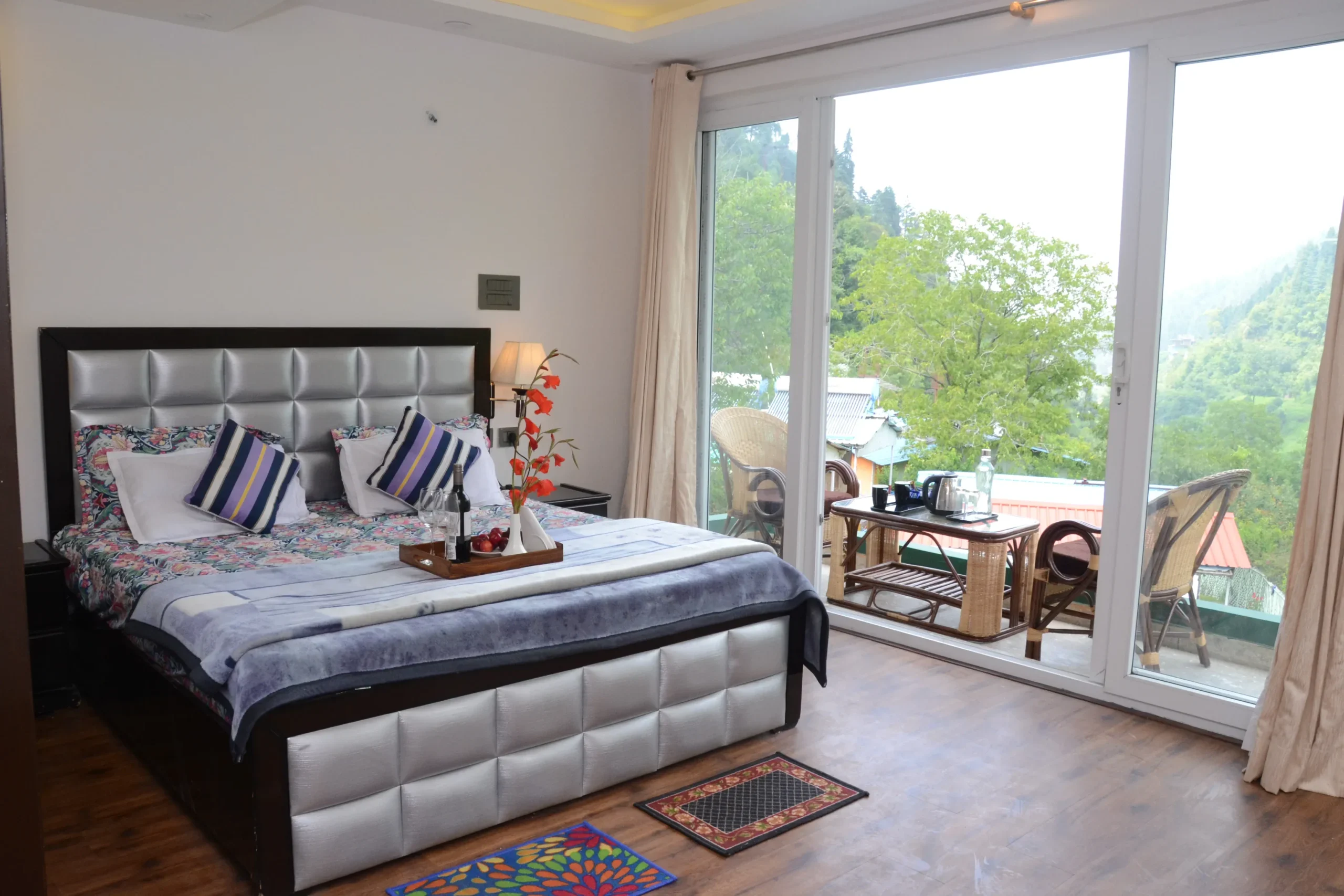 Welcome to your peaceful retreat in the mountains. Our Deluxe Room (Mountain View) is designed for couples or families with one child who want to wake up to breathtaking views of Mussoorie's hills.